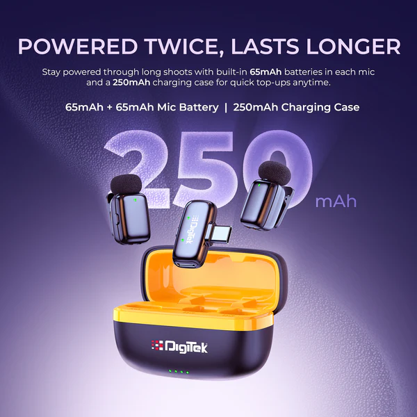 Digitek® (DWM-008 PRO) Wireless Microphone & Receiver with Type-C Connector, 2x Mic System, 2.4GHz Frequency, 4Hr Battery, 20m Range, For Android Devices, Ideal for Voice Recording, & Live Streaming