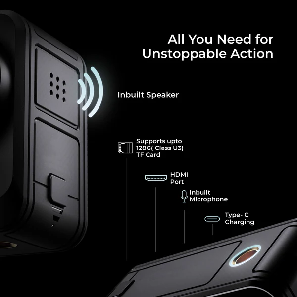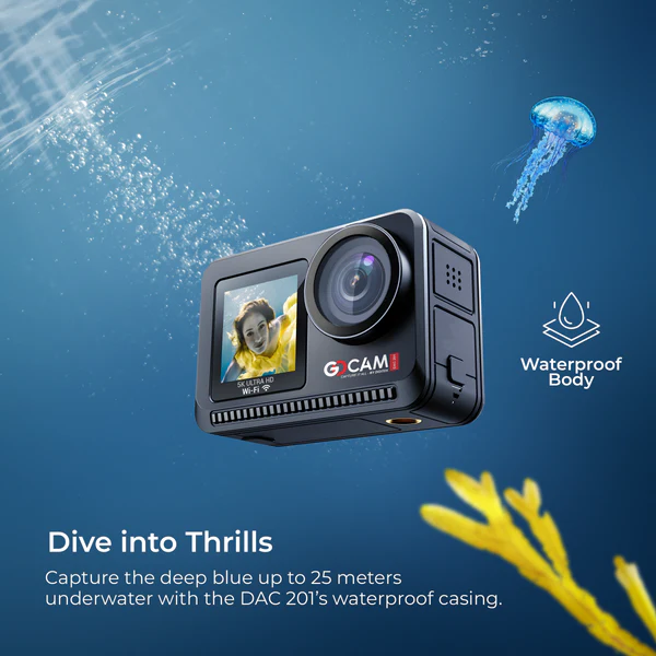 - Digitek GoCAM DAC-201 8K Waterproof 30fps 24MP WiFi Ultra HD Sports Action Camera with Dual Screen 2" IPS Touch Screen & Back 1.3" Screen