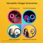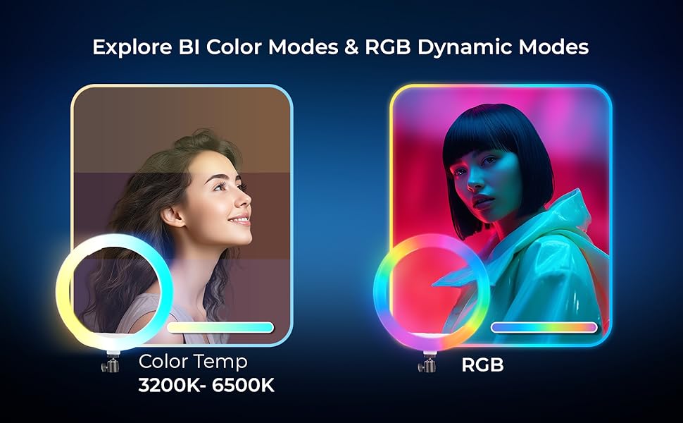 - Very versatile RGB ring light with multiple colors and brightness settings is a fabulous assistance for your daily life; Typical 3-color temperature lights can be used for makeup, reading, video conferencing and any other scenes; 21-color rainbow lights is creative for cool lighting effects, such as advertising design, fun video, festival, party, etc.