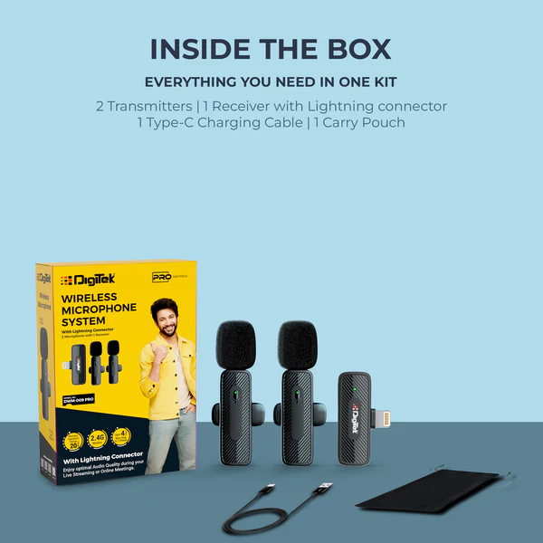 Digitek (DWM-009 PRO) 2.4G 1 Receiver with Lightning Connector & Dual Respondent 2 Microphone