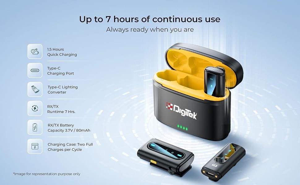 Digitek® (DWM-112) 2-in-1 Wireless Microphone System, 50M Range, Noise Reduction, 7Hrs Run Time, 2.4G, Type C to Lightning, for Android / iOS, Seamless Audio Recording, Vlogging, YouTube & More