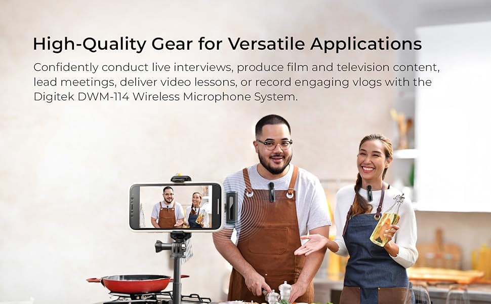 Digitek® (DWM-114) 2-in-1 Wireless Microphone, 2.4GHz, 6.6Hr Battery, Noise Reduction, 40m Range, 360° Sound Capture, Plug n Play, iPhone & Android Compatible, for Video Recording, Interview, Vlogging!