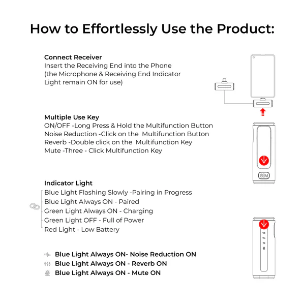 - Transmitter with Noise Reduction Function. Reverberation effect, it is convenient to adjust the recording effect in a timely manner.
