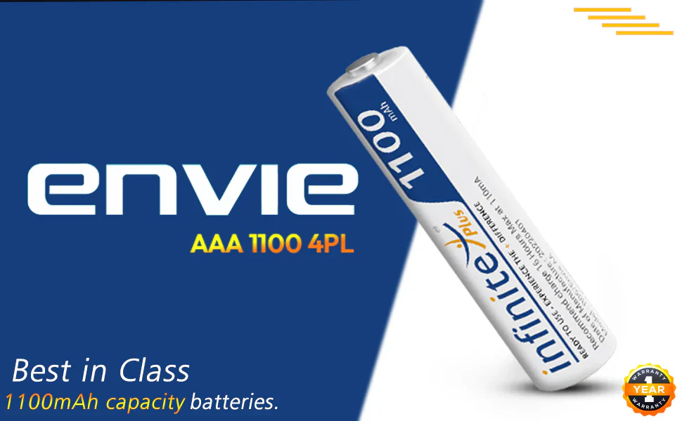 - Compatibility : Envie AAA Batteries are compatible with numerous devices including Remote Controls, Electronic Toys, Cameras, Flashlights, Torches, and various other devices. Batteries also support the Quick Charge mechanism which can be done via any smart or quick charger.