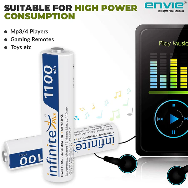 • Compatibility: Envie AAA Batteries are compatible with numerous devices including Remote Controls, Electronic Toys, Cameras, Flashlights, Torches, and various other devices. Batteries also support the Quick Charge mechanism which can be done via any smart or quick charger.
