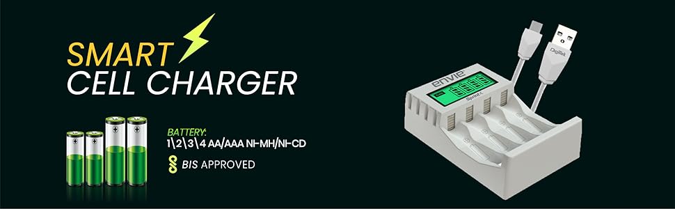 ENVIE (ECR 11) Speedster Fast Charger for AA & AAA Rechargeable Batteries (with LCD Display)