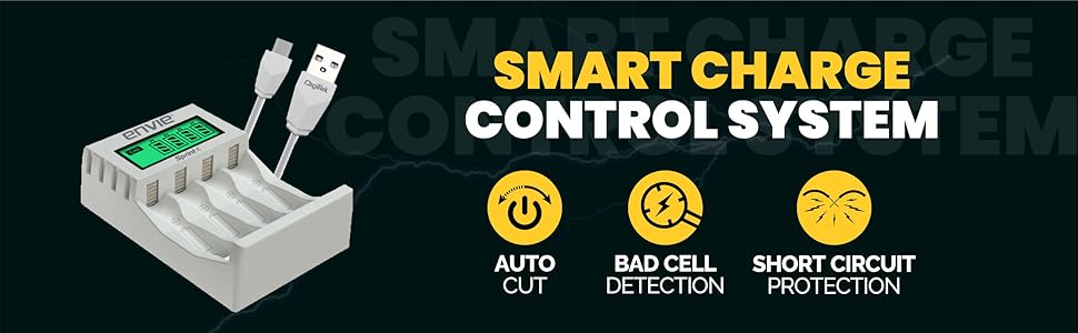 ENVIE (ECR-31) Rapide Ultra Fast Charger for Rechargeable Batteries AA & AAA Ni-mh, with LCD Display, Smart Charge Control System