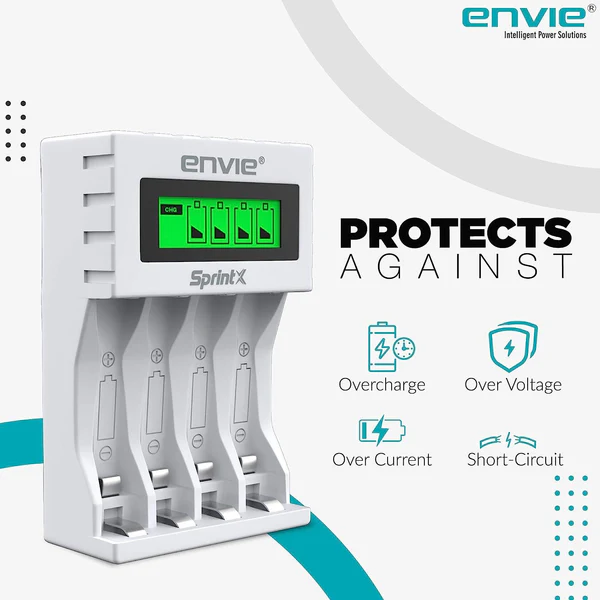 ENVIE (ECR 11 MC) SprintX Ultra Fast Charger for Rechargeable Batteries AA & AAA Ni-mh, with LCD Display, Smart Charge Control System – (White)