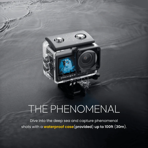 Digitek GoCAM (DAC-002) 5K 60fps 24MP WiFi Ultra HD Sports Action Camera with 2″ HD Screen & External MIC Support 100 feet Waterproof (with Waterproof case) 2 x 1350mAh Battery