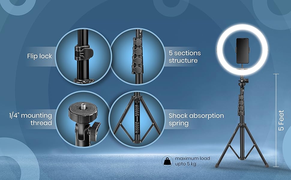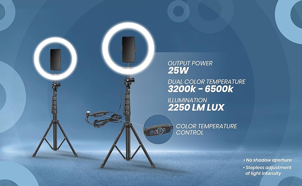 - PERFECT LED LIGHT DESIGN The LED ring light is made of special energy-saving LED beads, constant current drive and low power loss,low heat output, safety and environmental protection,lightweight and portable.