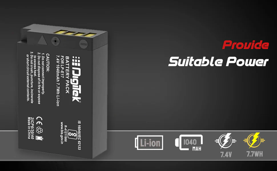 Digitek (LP-E17) Lithium-ion Rechargeable Battery Pack for DSLR Camera, Compatibility – EOS 750D, EOS 760D, EOS 800D, EOS 77D & More