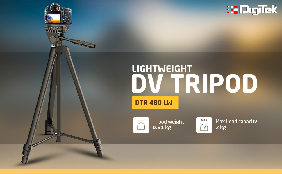 Digitek (DTR-550 LT) (65 Inch) Lightweight Tripod (Maximum Load up to 5kg), 5.57 Feet Tall for Digital SLR & Video Cameras, Made Aluminium Material