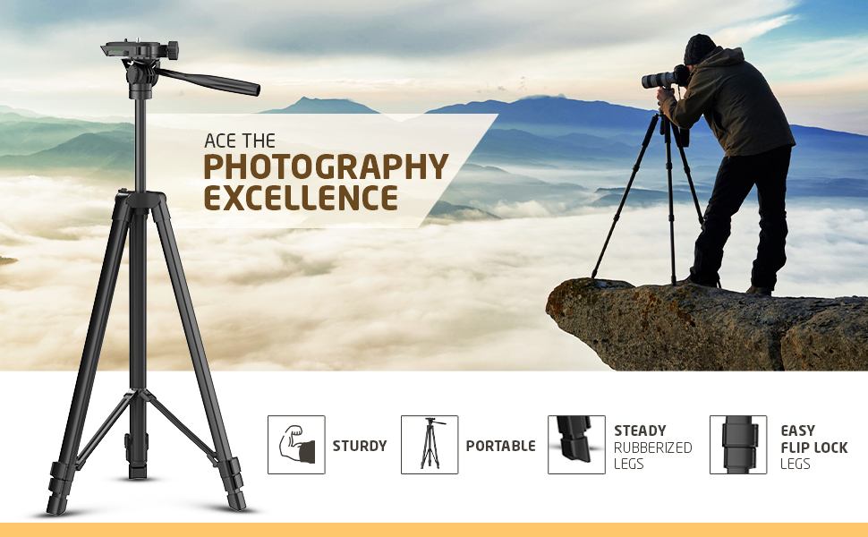 - Premium finish light weight professional tripod with adjustable height, multi level locking and steady rubberized legs