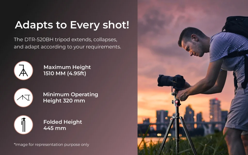 Be the first to review “DIGITEK® (DTR 520 BH) 152CM Foldable Aluminum Tripod Cum Monopod with Swivel Pan Head, 4 Section Adjustment, 7kg Max Load, Max Operating Height: 4.95Ft, Compatible with DSLR Camera, Dv Video Camcorder” Cancel reply
