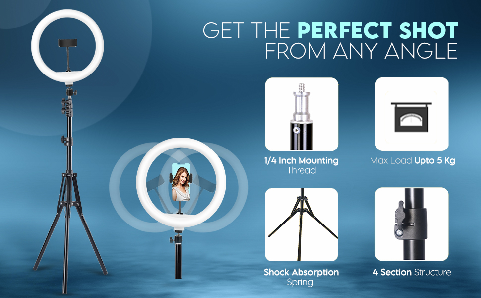 | Mounting Hardware | Light Stand, Ring light body, Hot shoe mount, Smart phone mount |