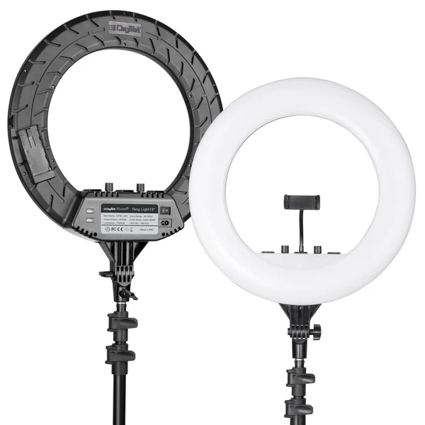 Digitek Platinum LED Ring Light DPRL-19H with No Shadow apertures, is essentially a boon for Photo-Video shoots at No Electrical Power Supply Spot too. Works on both AC & DC power. This Bi-color light source is oasis at place like Market, Beach, Park or any outdoor for amazing results. Ideal for Make-up Artists & Fashion photographers, Video Shoot, You tube Videos etc. Perfect light to shoot Interviews, Food / Product shots, V-logs, Documentaries & much more. Can mount it to a Grip Head or Light Stand as per need. It has Steeples Adjustment for Color Temperature to maintain product tone or create fine subject details. Runs on 2 optional NP-F550 / 750 /960 Li-ion Batteries(Batteries NOT Included). Input: 110V220 50hZ/60hZ Out power : 80W Luminance :7200LM Adjustment Range: Steeples Adjustment Color Temperature : 3200K-5600K Compatible Battery : NP-F550/750/960(NOT INCLUDE) Flash Index : RA>97 Operational Instruction 1. Please take out the light from the bag, insert the power line into the plug & connect to AC Power Source. 2. Rotate the Knob Clockwise to Turn on the Light. on Rotating Further the light become brighter.