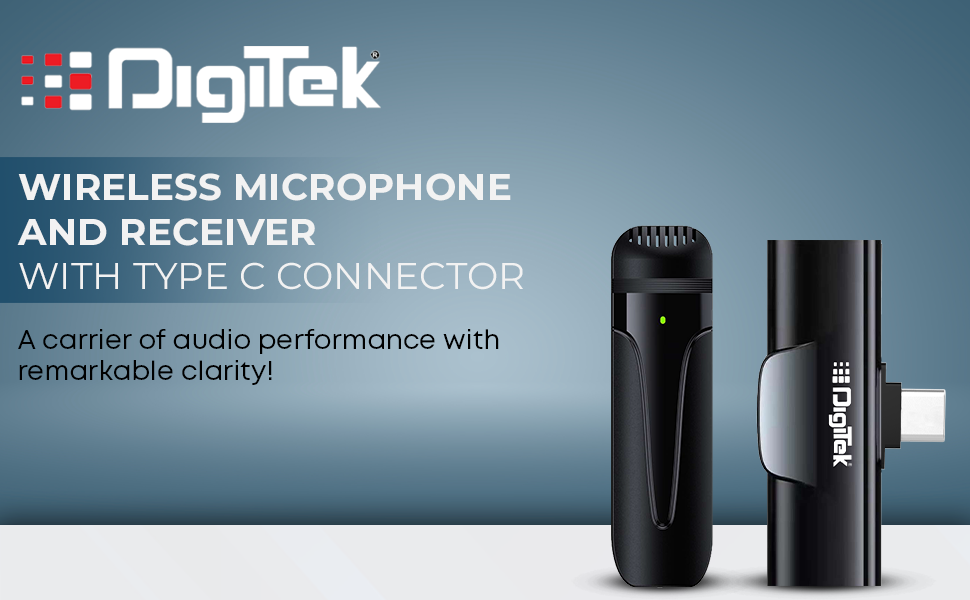 Digitek (DWM-001) Wireless Microphone & Receiver with Type C, in-Built Noise Cancellation Mic Suitable for Vlog You Tube Live Streaming Video Recording and More