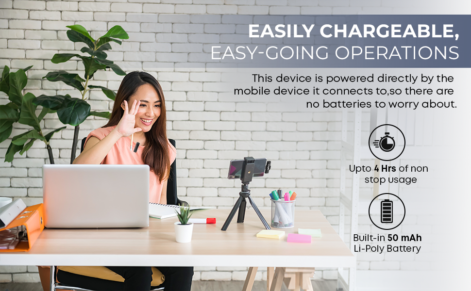 - Built-in-50mAh Li-poly battery for to 4 Hours operation. Charging via USB(AC adapter or Power Bank-not included).
