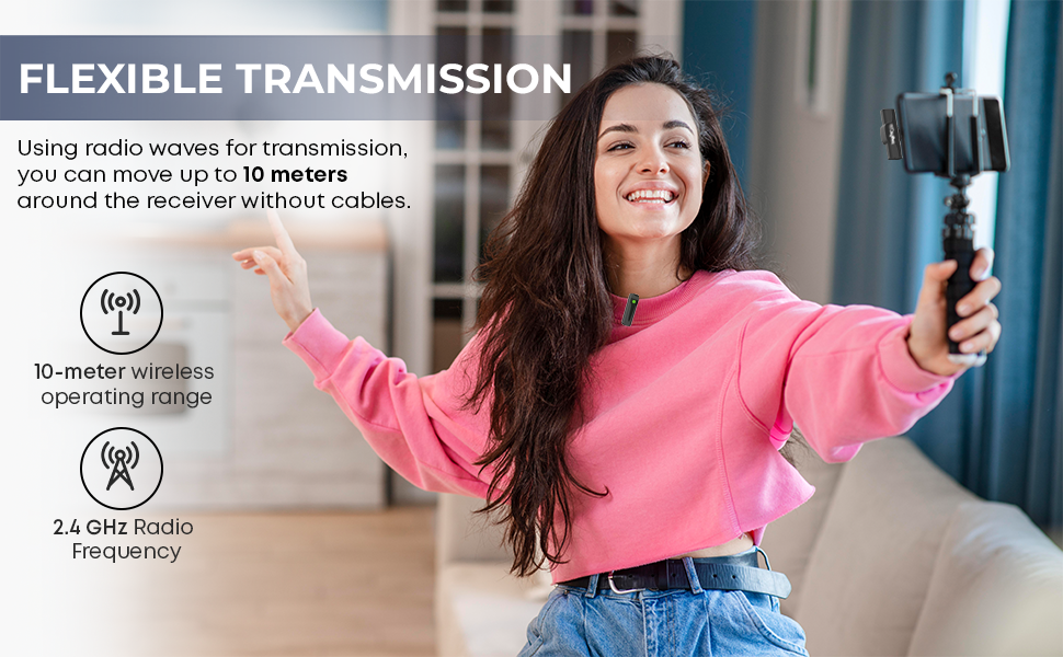 Digitek® (DWM-007 PRO) Wireless Microphone & Receiver with Lightning Connector, 2.4GHz Frequency, 4Hr Battery, 20m Range, Compatible with iPhone & iPad, For Voice Recording, Interview & Live Streaming